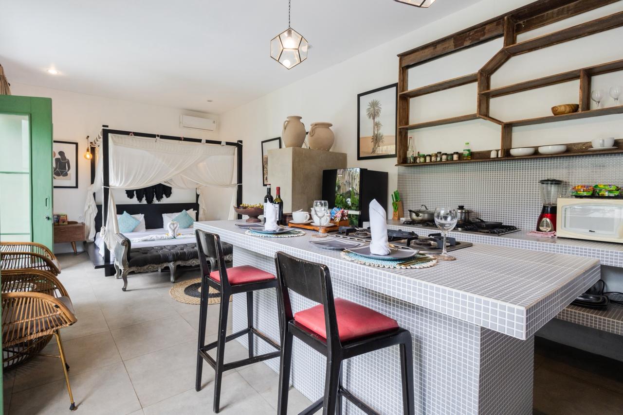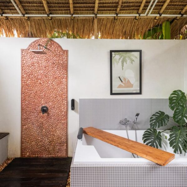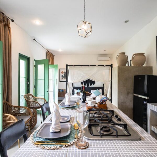 Step into a world of tranquil luxury at this unique studio villa, where rustic artisan charm meets modern tropical living. Designed for those who appreciate aesthetic detail and a seamless connection with nature, this villa offers an intimate and stylish escape from the everyday.