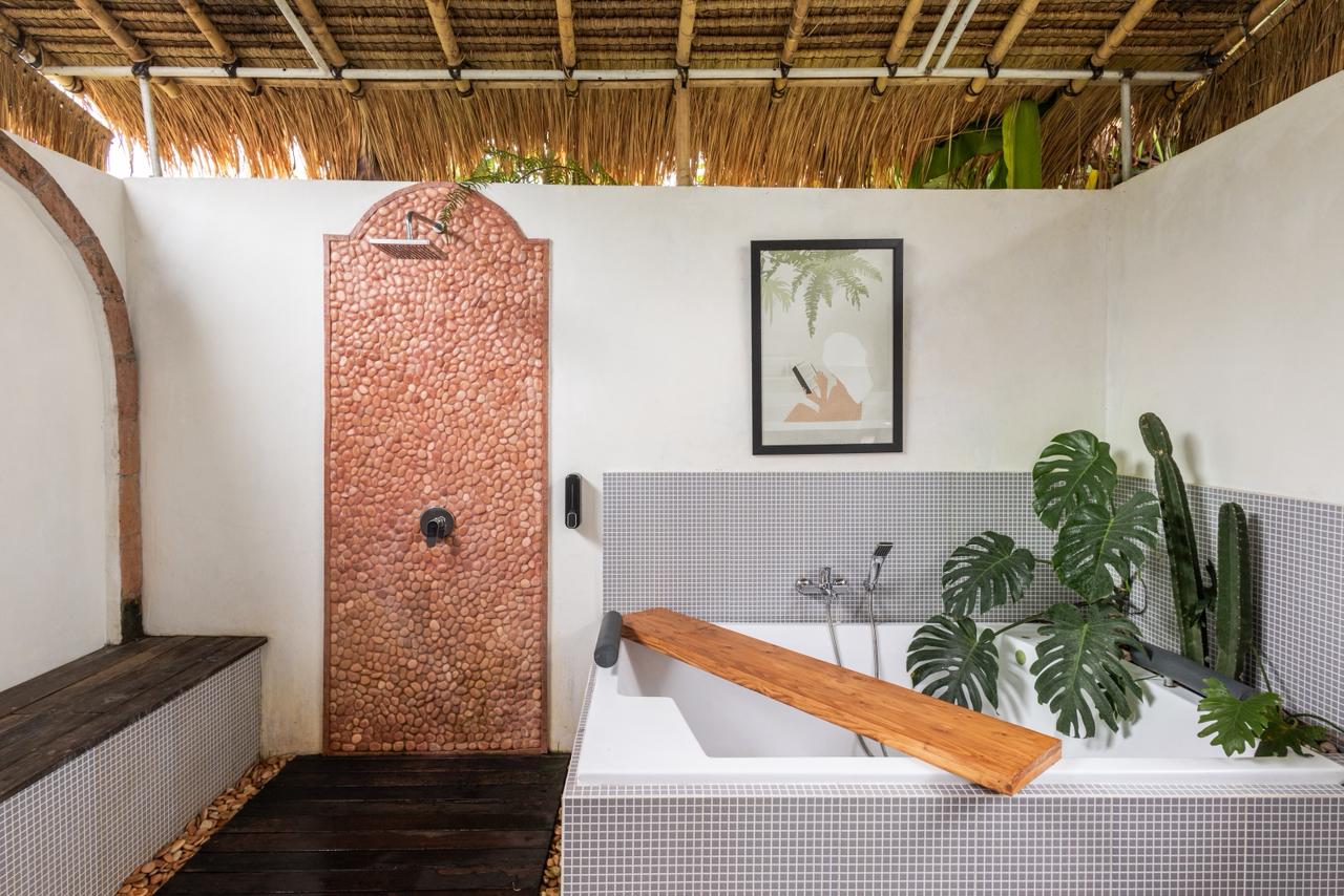 Stylish studio villa with a private garden, outdoor bathtub, and traditional gazebo. Fully equipped kitchen and AC included. Great for solo travelers or couples.