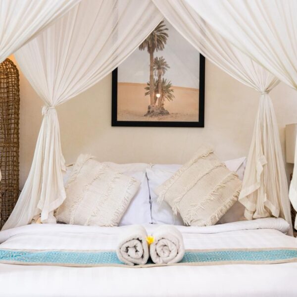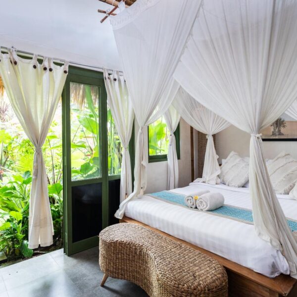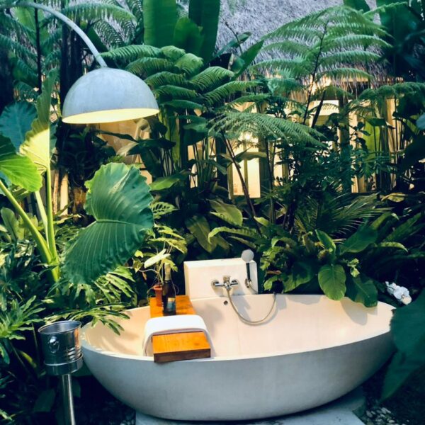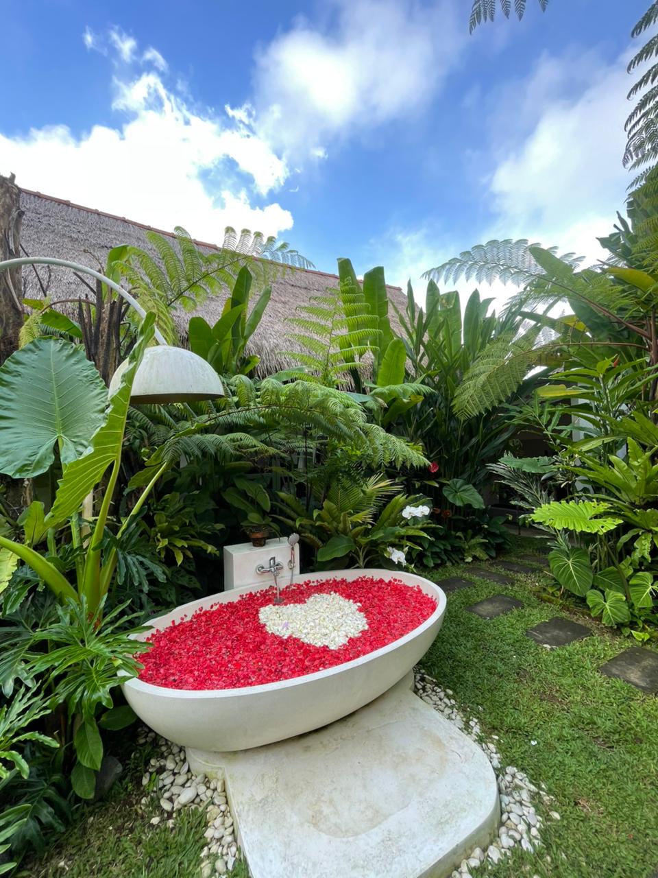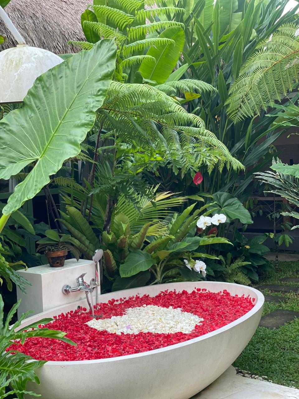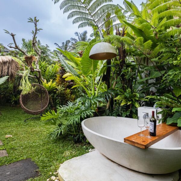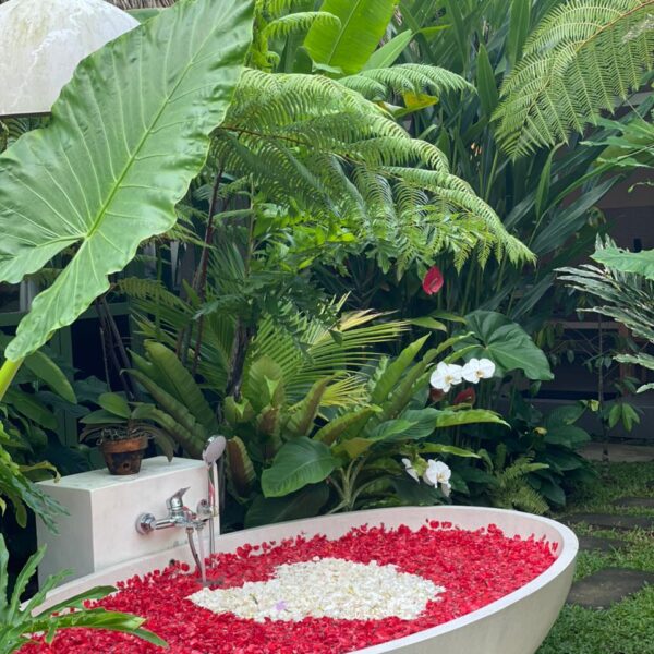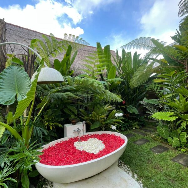 Designed specifically for romance and seclusion, The Azure Garden Suite is an intimate sanctuary that blends Mediterranean-inspired details with lush, Balinese-style greenery. This villa is a masterclass in “indoor-outdoor” living, offering a private world of floral baths and breezy, sun-drenched spaces.